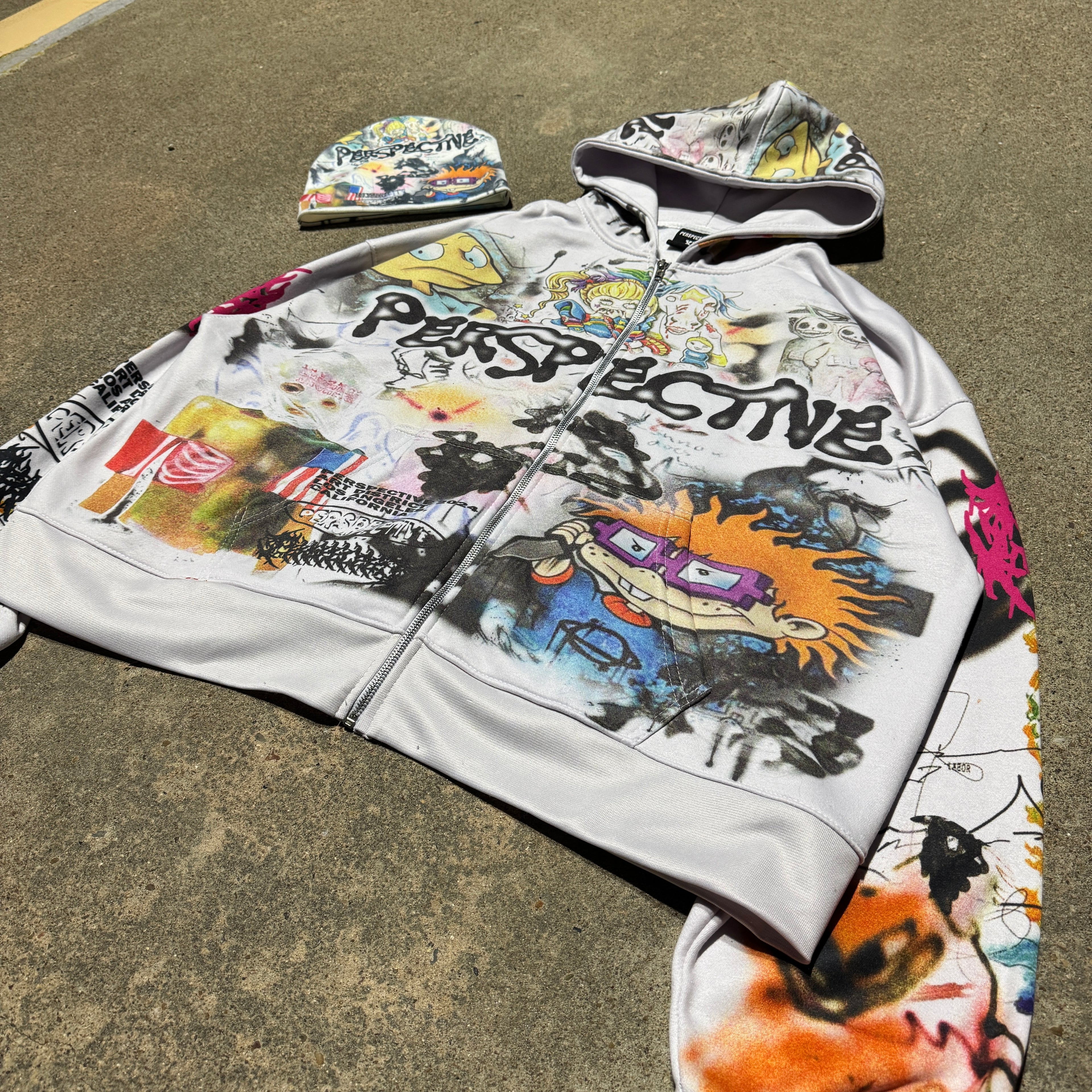 Retro horror twisted cartoon graphic zip